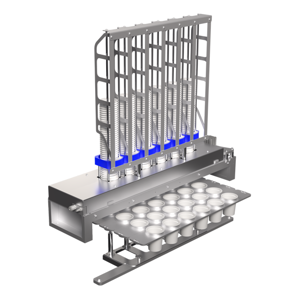 High-precision detection device for correct cup presence verifi cation, double denesting detection, and in-machine container recognition, ensuring a safe production flow.